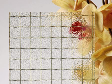 O vidro aramado, também conhecido como vidro de segurança, é um tipo de vidro fabricado com a incorporação de um rolo de tela metálica no lado ainda fundido da fita de vidro enquanto ela está sendo produzida. Esse processo envolve a passagem do vidro e da tela metálica por rolos superiores e inferiores para criar o vidro aramado.