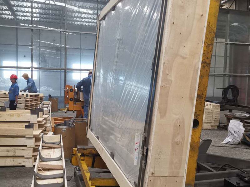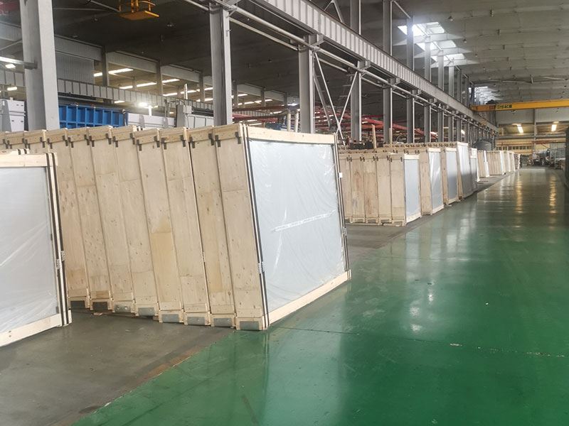 Em nossa linha de produção, a camada de cobre é cuidadosamente lavada com água ionizada e seca. Um primer contendo chumbo é aplicado uniformemente à superfície de cobre usando uma máquina de pulverização de tinta, seguido pela aplicação uniforme de um revestimento superior sobre o primer usando uma segunda máquina de pulverização de tinta. A linha de produção continua até que a camada superior esteja completamente seca, resultando em um espelho de vidro prateado de alta qualidade.