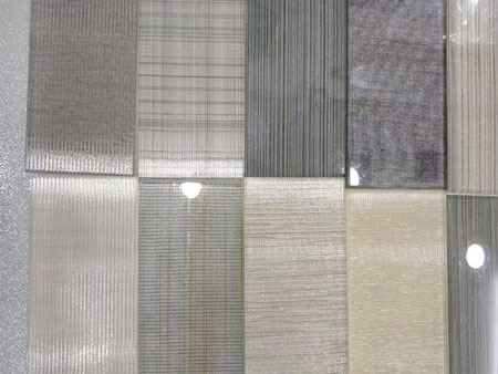 O vidro laminado de tecido, também conhecido como vidro ensanduichado, é feito por camadas de filmes EVA robustos e termoplásticos entre duas folhas de vidro laminado comum. Uma ampla gama de materiais, como seda, cetim, seda pintada ou outros tecidos, pode ser colocada entre os filmes EVA.