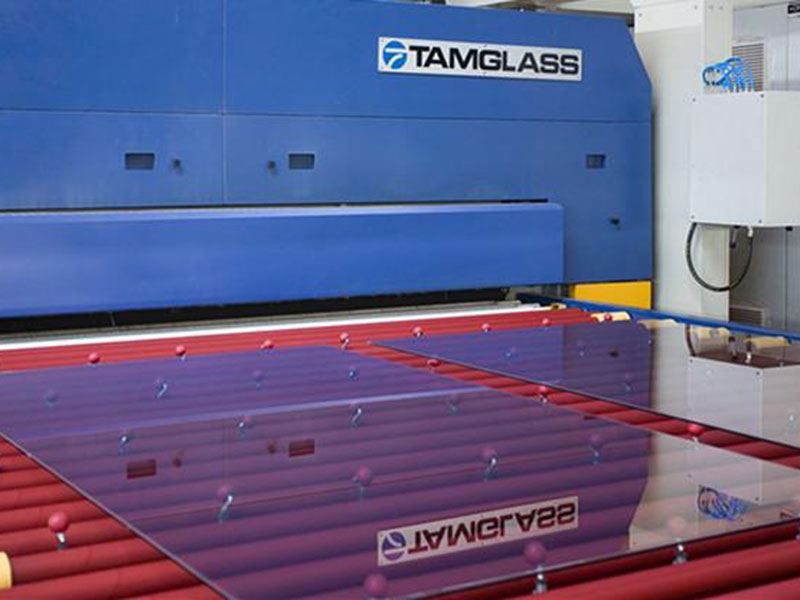 Para fazer vidro temperado plano, o vidro é enviado para um forno especializado chamado "forno de têmpera". O vidro é aquecido a uma temperatura compreendida entre 680-750 e, em seguida, arrefecido rapidamente. Este processo interrompe a estrutura molecular do vidro, fazendo com que o esforço compressivo seja distribuído na superfície quando o esforço elástico for concentrado na camada central.