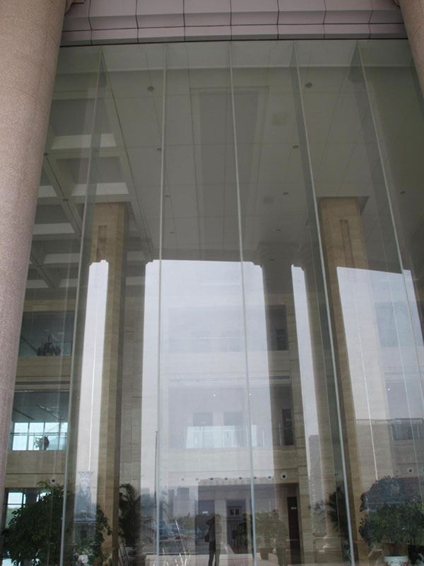 O vidro reforçado é apropriado para o uso em fachadas do edifício, em janelas exteriores, em portas automáticas, em escadas rolantes, em chuveiros e em armários do banho.