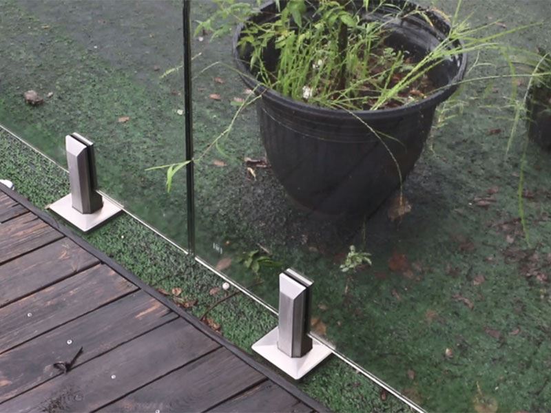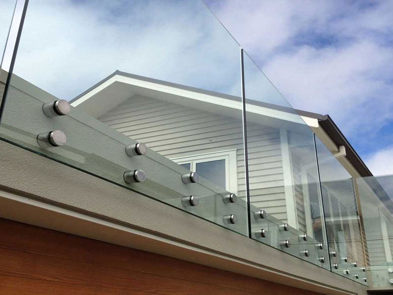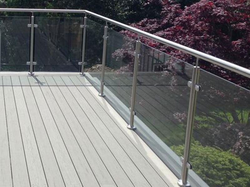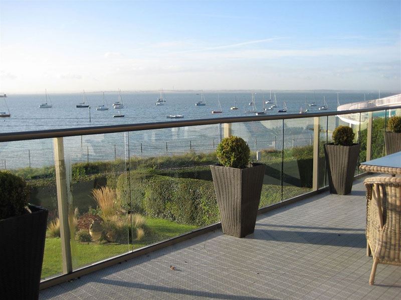Os guarda-copos de vidro para escadas internas e varandas externas, também conhecidos como balaustradas, são geralmente feitas de vidro temperado devido à sua alta resistência ao impacto e às vantagens do estresse térmico. No caso raro de o vidro temperado quebrar, ele se estilhaça em pedaços pequenos e com bordas suaves que não representam risco de ferimentos. O material comum da balaustrada também inclui vidro laminado devido ao seu excelente desempenho de segurança.