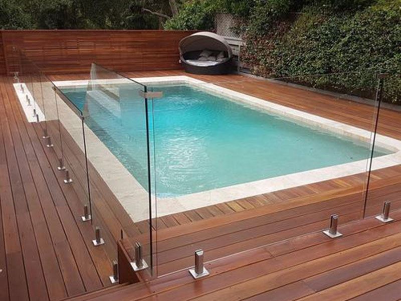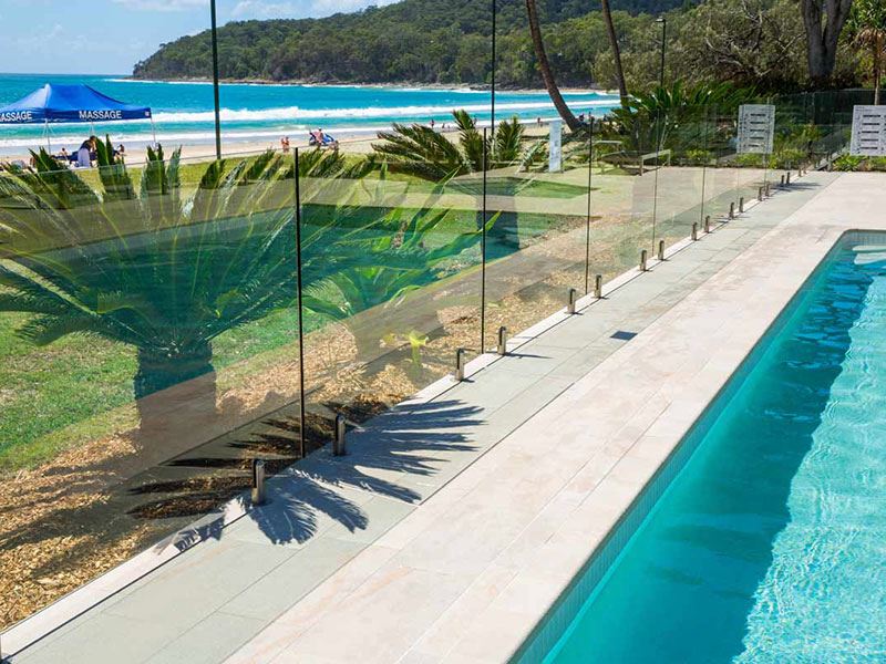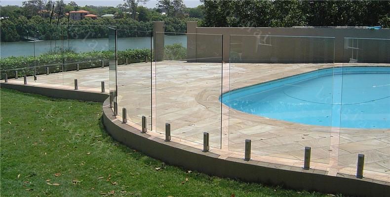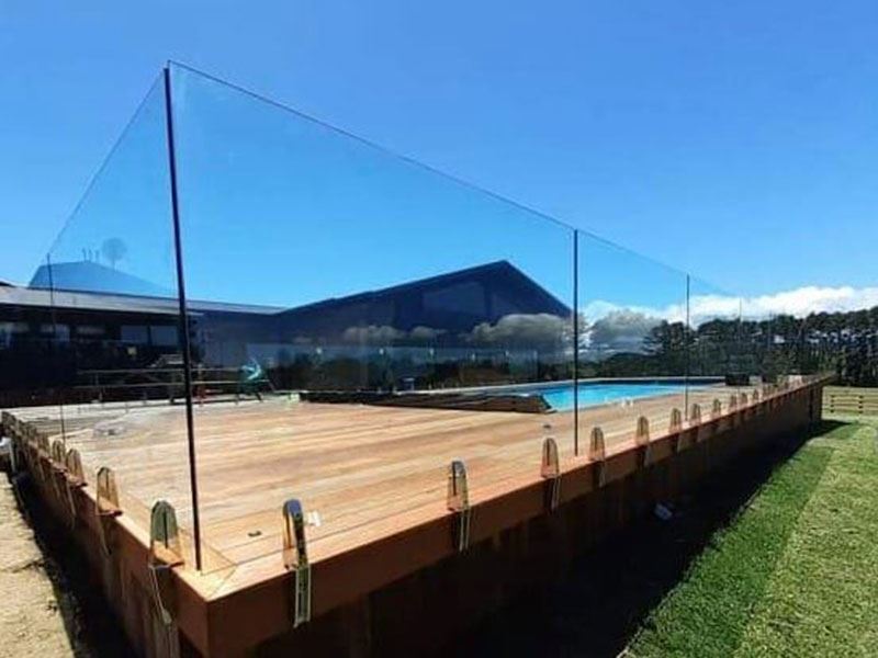 O vidro temperado é frequentemente usado para cercas de vidro de varandas, praças e piscinas, por sua alta resistência à compressão e características de segurança.