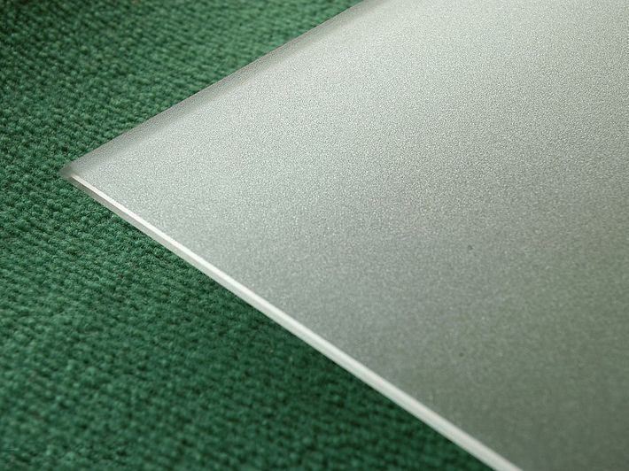 O vidro jateado tem uma textura rugosa com saliências e ranhuras que difunde a luz que passa através dele, criando uma superfície translúcida mas não transparente. Este tipo de vidro é normalmente utilizado em locais como casas de banho e divisórias de escritórios onde é necessária privacidade.