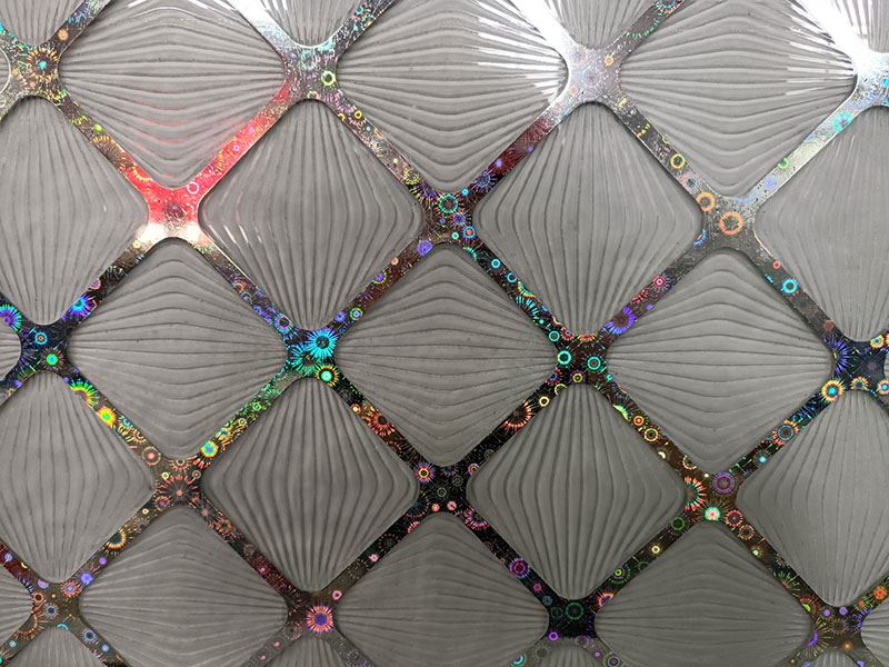 O vidro impresso revestido com titânio confere uma beleza única à decoração da casa. É fabricado utilizando vidro float transparente comum, vidro float ultra transparente ou vidro fosco como substrato e imprimindo o padrão desejado na superfície do vidro utilizando a tecnologia de impressão serigráfica. Em seguida, uma camada de película de titânio é depositada na superfície do vidro utilizando a tecnologia de pulverização catódica por magnetrão. Depois disso, a tinta impressa com a serigrafia é lavada com uma proporção adequada de solução alcalina, deixando um padrão vívido de película de titânio na superfície do vidro. O seu efeito decorativo é melhor do que o do vidro em relevo, dando às pessoas uma sensação refrescante. Trata-se de um novo tipo de vidro decorativo para interiores.