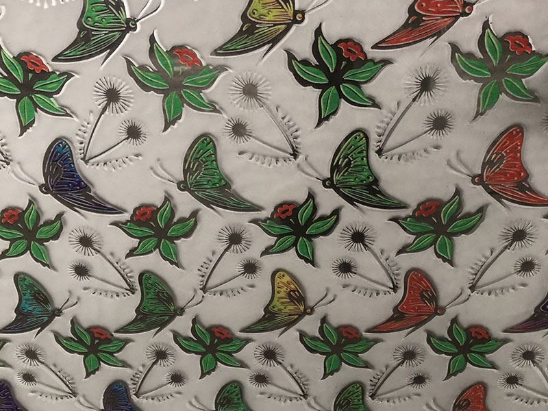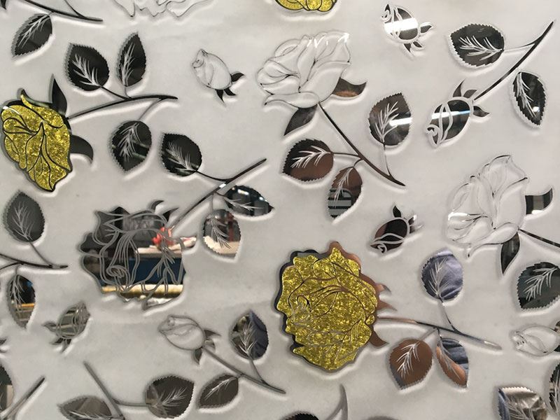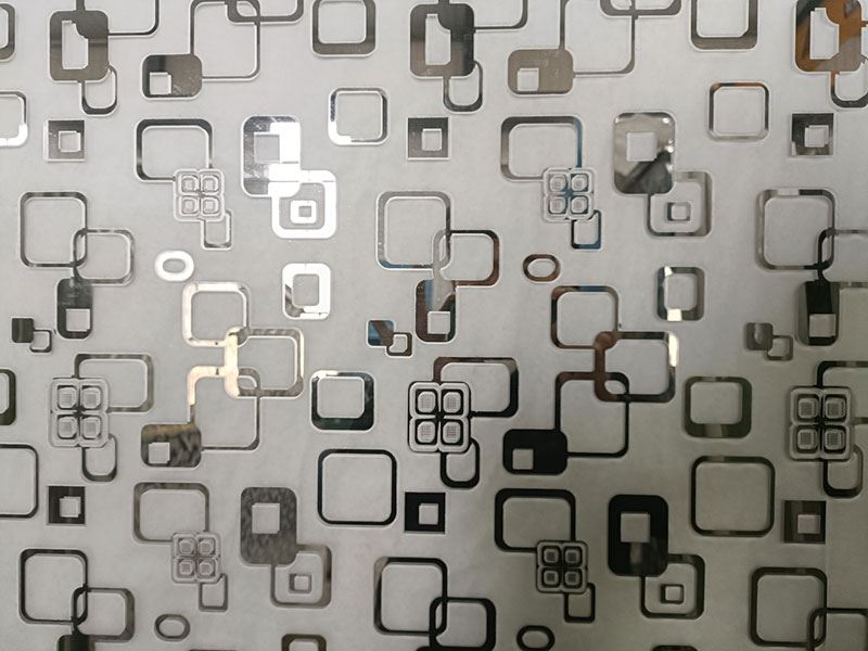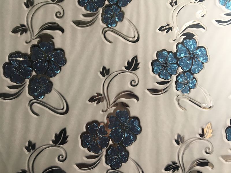 O vidro impresso revestido com titânio pode ser combinado com a tecnologia de vidro gravado com ácido para formar uma combinação dupla de padrões gravados côncavos e padrões correspondentes revestidos a titânio. Isto cria um vidro refrescante de processo duplo com efeitos decorativos interiores extraordinários, a que chamamos vidro artístico gravado com ácido revestido a titânio.
