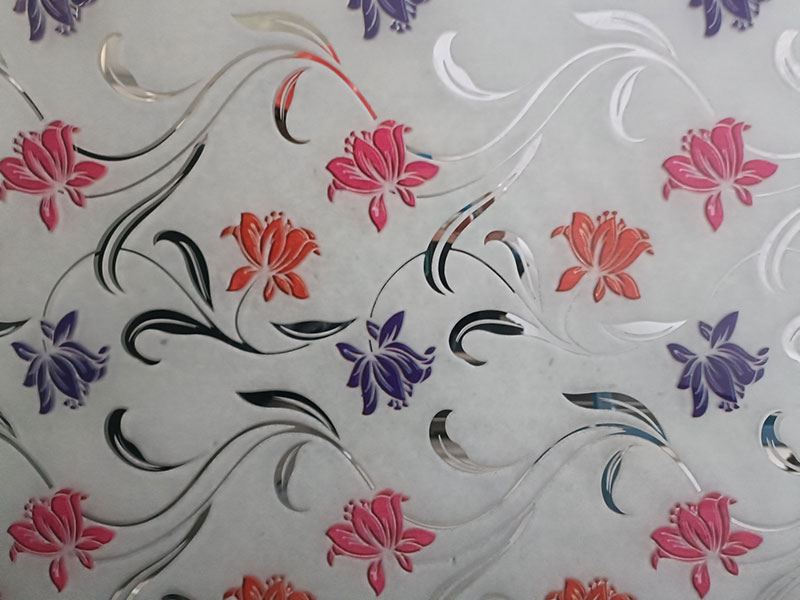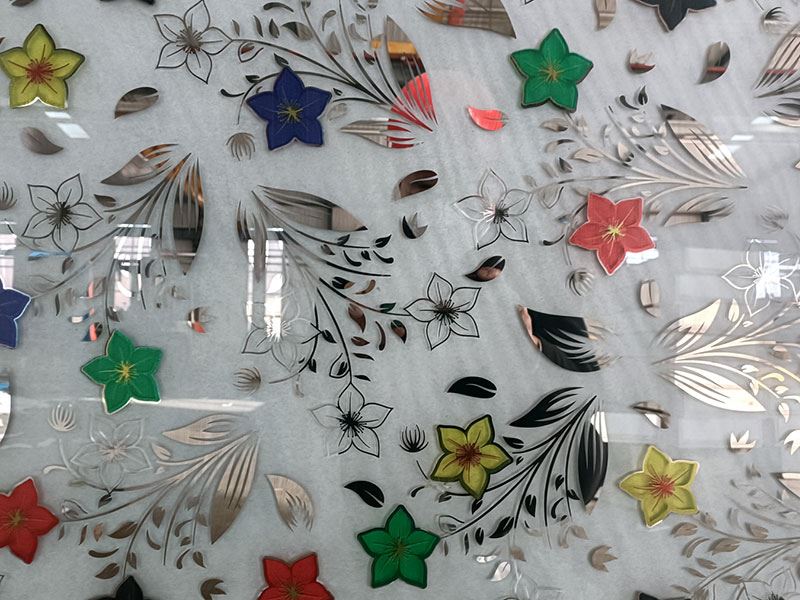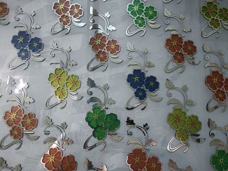 O processo consiste em imprimir flores de gelo na superfície lisa do vidro fosco utilizando a serigrafia. As flores de gelo podem ser de qualquer cor à sua escolha, como dourado, azul, verde, vermelho, roxo ou muitas outras. Em seguida, é impressa uma camada de tinta a alta temperatura sobre a flor de gelo para maior proteção. Em seguida, é enviada para a linha de pulverização catódica por magnetrão, onde é aplicada uma camada de película de titânio no bordo da flor de gelo. Por fim, a tinta protetora é lavada com uma solução alcalina, revelando o deslumbrante produto de vidro artístico de flor de gelo revestido a titânio. Tornará definitivamente a sua decoração mais magnífica, dando um toque de sofisticação ao espaço.
